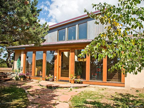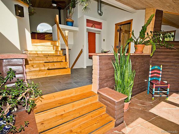 This is a lovely, well-conceived 2 bed/2 bath home in excellent move-in condition. The owner/builder created open bright spaces with views and character, and living areas for every season and occasion. Enter into a large south-facing passive solar sunroom with attractive adobe bricks to store warmth in winter. Proceed to the main living area with an open kitchen and living room with vaulted ceilings and wood stove. Main floor includes an eating bar, dining area, adjacent 3-season screened porch, and a second open porch with exceptional views of Kit Carson Peak. Off the kitchen is a lovely flagstone patio surrounded by garden spaces, pinon pines, and fenced for deer. This is a truly custom home, designed by the seller for the climate and the natural contours of the lot: south-facing windows and adobe walls create passive solar warmth and cheery light in the winter. The rooms and orientation maximize quiet, privacy, and connection with nature whether inside or outside. The home is located above & set back for privacy on a paved road with a large sparsely developed tract adjoining to the west protecting exceptional valley views. Mountain views to the east are also plentiful from the living room, open porch, and screened porch. A few steps down from the main level is a full bath with antique claw-foot tub, and bedroom with dual closets and custom bamboo doors along the north wall. And downstairs! The garden level living area is 700+ square feet with a bedroom, appealing bath with custom tile walk-in shower, and additional multipurpose spaces suitable for a den, artist's studio space, office, and/or kitchenette/apartment, and private walkout. In addition to the passive solar design, energy saving features include a solar-boosted hot water tank, and warm air circulation system. Electric ETS unit is primary heat source. Monthly electric bills average less than $120 year round. Also 2-car carport and storage shed. This is the house you have been looking for!