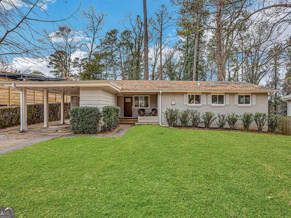 Beautifully renovated in 2016, this Lavista Park home features hardwood floors, exposed beams, and a wall of windows in the open living/dining area, offering views of the private backyard. The updated kitchen includes white cabinets, a gas range, stainless steel appliances, and granite countertops. The finished basement is perfect for entertaining, complete with a wet bar and bonus space, plus a partially unfinished area for laundry, a workshop, or doggie wash. Enjoy a spacious deck, fenced backyard, and covered parking with extra storage. Located on a quiet cul-de-sac near shops, dining, Emory, Buckhead, and Midtown.