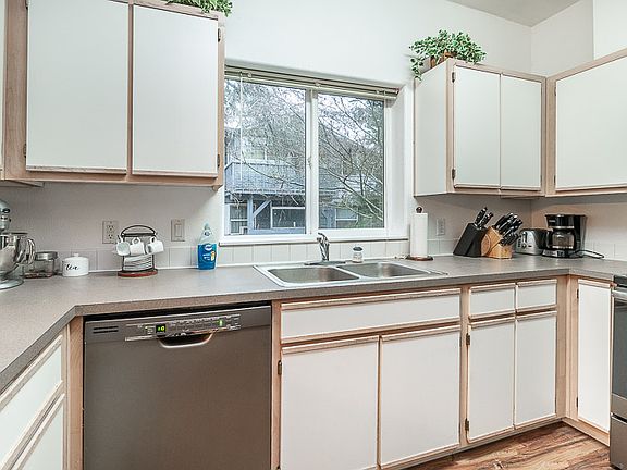 Beautiful condo/townhome with lots of updates including newer SS appliances, 9' ceilings, hardwood laminate, fixtures, and carpet in all the right areas. Views of Mt. Hood & Jefferson, plenty of storage, shelving in closets & garage; each bedroom has a full bath, master has a huge walk-in closet. Enjoy choice schools, easy access to I5 & amenities and living a life of low maintenance. Cozy gas fireplace. Better act fast on this hard to find a property under 180k!