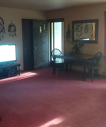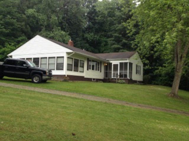 Really private and surrounded by woods. Home features peace and quiet with a nice rear deck with a pergola and a sun room. Good living space with hardwood floors a huge living room and lots of updates. Full, clean basement with a newer furnace, water heater and heat pump. Woods are great for tree stand hunting. Excellent detached pole barn is fairly new and measures 24 x 32. Building also has a 10 x 32 lean-to attached to back for wood or animals. Scenic views all around the yard and even across the road.