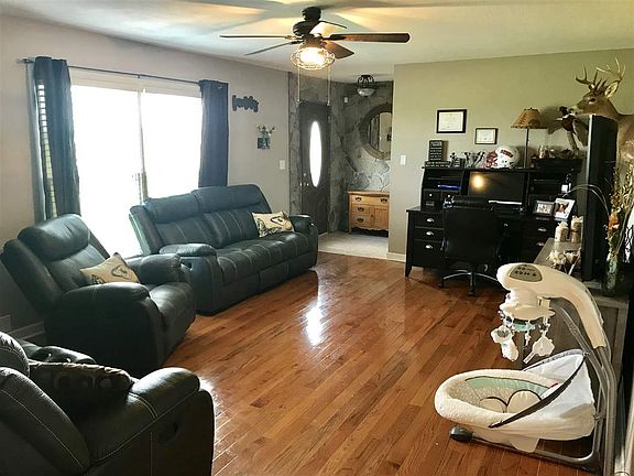 The best of both worlds, the privacy of the country with the convenience of being just minutes from town. A beautiful property with beautiful views! This 4BR, 2BA ranch offers it all on one level. Large living room with hardwood floors and that wonderful big picture window. Very cute kitchen with an island open to a nice family room area with wood burning fireplace. The bedrooms are all spacious with the master having a full bath. A wonderful bonus is the additional living space at the back of the house. This room is open to the kitchen with lots of natural light and a great view of the large backyard. The laundry/utility room between the kitchen and garage is perfect for that handy mudroom. This acre property also offers a nice deck/porch addition at the front door as well as a patio area in back. The garden spot is fabulous! Plenty of room to grow everything you want. The cool red barn offers wonderful storage (elevator included) and a home for those farm animals. A great find!