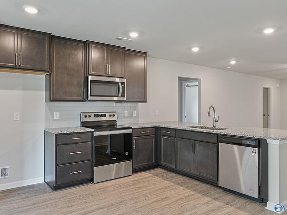 The 1580A plan- 3 bed, 2 bath and 2 car garage! Our Lifestyle Triangle joins together the living room, dining, and kitchen to create an open concept. Kitchen features beautiful backsplash, granite countertops and finished w/stainless steel appliances! Secluded master bedroom w/ en suite bath, double vanity and large master closet. Brick exterior, optional covered back patio on a beautiful lot. Come check out the Charleston community which features great lots, convenient access to Highway 72 and just 15 minutes away from Huntsville! 100% FINANCING. BUILDER PAYS ALL CLOSING COST WITH SILVERTON MORTGAGE.