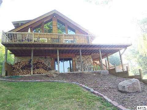 LOG HOME with UP NORTH FEEL! Enjoy hunting, fishing and more in this secluded home situated on 5.3 acres and lakefront on a private non-motor lake. Home offers 4 beds, 2.5 baths, main level laundry, spacious living room, rough plumbed for additional bathroom and more. Exterior includes pole barn, fenced back yard and over 800 sq. ft. of deck overlooking the lake. Subject to lenders short sale approval.
