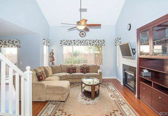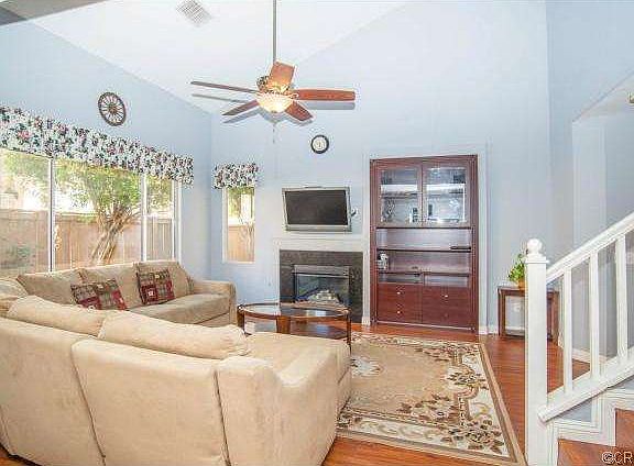 Lovely 3BR, 2.5 BA, Detached Home in GATED Tustin Grove* Wonderful Association Pool, Spa and Playground* Close to Tustin Legacy, The Disctrict Shopping & Theaters* Porcelain Tile Entry* Newly Installed Carpet* Gorgeous Wide Plank Hardwood Floors on the Main Level & Beautiful Curved Staircase with Hardwood Steps* Large Living Room w/Volume Ceiling and Ceiling Fan, Fireplace w/Granite Surround, Wide Baseboards, Custom Built-In Entertainment Center, Expansive Windows, Light & Bright* Sliding Glass Doors in Dining Area to Private Fenced Backyard Patio Area with Raised Planter Beds* Lovely Lush Plantings & Fruit Tree* Gated Side Yard* Powder Room w/Granite Counter* Upgraded Kitchen with Granite Counters, Spacious Snack Bar, Newer Stainless Steel Appliances, Planning Desk* Spacious Master Suite w/Double Door Entry, Ceiling Fan, Large Walk-in Closet, Dual Vanity Sinks with Granite Counters, Oval Tub/Shower w/Glass Enclosure* Spacious Secondary Bedrooms with Ceiling Fans* Hall Bath w/Granite Counter, Tub/Shower* 2nd Floor Laundry in Hall with Closet Doors* Other Amenities Include Wood Blinds, Drapes, Security System, Porcelain Tile Floors in Kitchen & Baths, Linen Closet* 2-Car Attached Garage w/Direct Access to Kitchen* Low Association Dues & No Mello Roos*