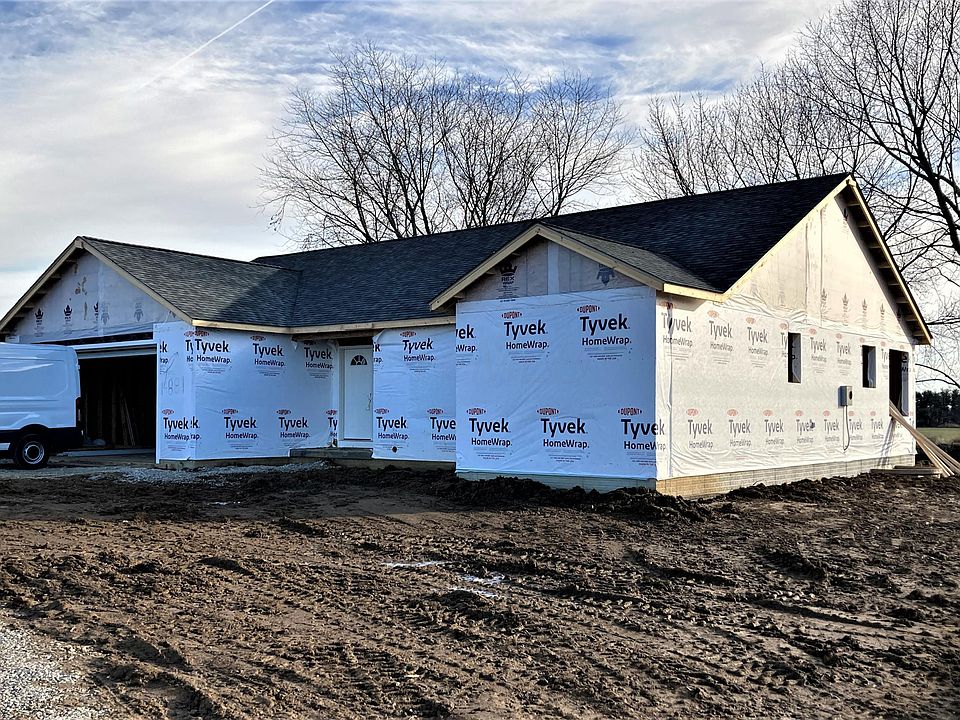 BUILDING NOW. BRAND NEW 3 BDR, 2.5 BATH RANCH ON WOODED COUNTRY LOT. OPEN FLOOR PLAN. HARDWOOD IN FOYER, GREAT RM, KITCHEN AND HALL. VINYL PLANK IN BATHS, LAUNDRY AND MUDROOM. KITCHEN HAS ISLAND, GRANITE COUNTERTOPS, APPLIANCES, LOADS OF CUPBOARD AND COUNTER SPACE, & PANTRY. SPLIT BEDROOM FLOOR PLAN FOR PRIVACY. MASTER HAS PRIVATE BATH, DOUBLE SINK VANITY, GARDEN TUB, & SEPARATE SHOWER, WALK-IN CLOSET. TWO MORE GOOD SIZED BEDROOMS WITH GENEROUS CLOSETS, AND A SECOND FULL BATH WITH VANITY AND TUB/SHOWER COMBO. MUDROOM OFF GARAGE W/ADJ. HALF BATH. FULL POURED WALL BASEMENT W/BATH ROUGH IN AND EGRESS WINDOW. COVERED FRONT AND REAR PORCHES. LOW U FACTOR WINDOWS. ATT 2 CAR GARAGE W/OPENER. 40' X 60' OUTBUILDING WITH CONCRETE FLOOR, ELECTRIC, FRONT & REAR SLIDING DOORS.