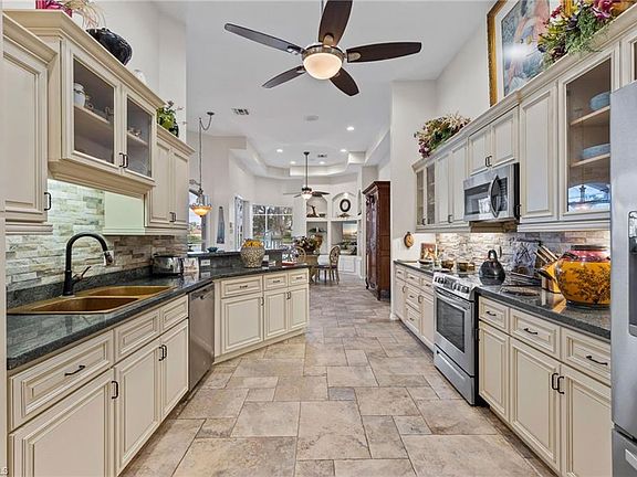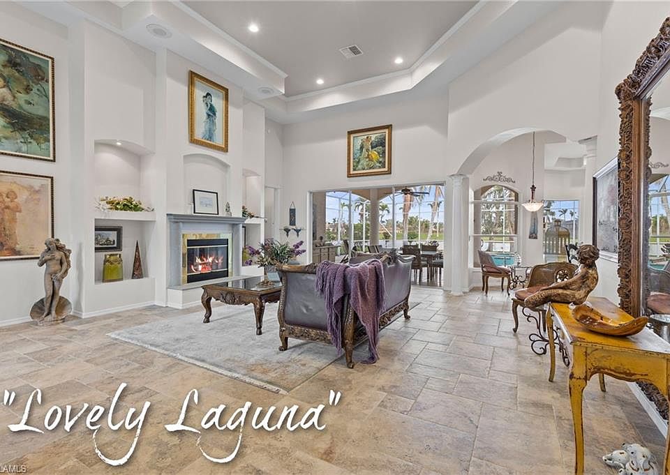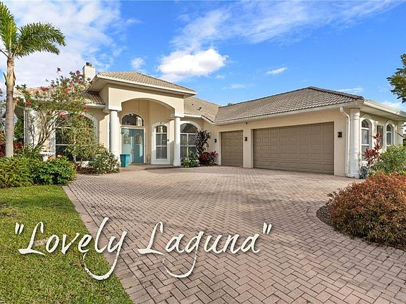 LOVELY LAGUNA ON THE LAKE!! Welcome to this truly LOVELY custom home with FABULOUS UPGRADES, 3-CAR GARAGE, SPARKLING POOL AND SPA & peaceful LAKE VIEWS, perfectly set in the popular gated community of Water's Edge at Peppertree Point w/ GULF ACCESS MARINA, SANDY BEACH AND 600FT PIER! Features include; fully remodeled kitchen (2020) w/ all new cabinets, counters, appliances, backsplash & hammered copper sink; NEW TRAVERTINE TILE FLOORS, cozy wood floors in the bedrooms, DRAMATIC SOARING HIGH CEILINGS, plantation shutters throughout, lots of recessed lighting keeping the home light & bright, large master suite, spacious guest bedrooms each w/ access to their own bathroom, multiple walk-in showers, Fireplace, 2 NEWER AIR CONDITIONERS (2018 and 2019), HUGE LAUNDRY and so much more!! Outdoors enjoy a RECENTLY AND TOTALLY REMODELED SWIMMING POOL, SPA, POOL EQUIPMENT AND DECK AREA (2020), HUGE COVERED LANAI, large backyard, sunny sunrise eastern exposure, tropical landscaping, brick paver driveway, WHOLE HOUSE GENERATOR INSTALLED 2022, & more!! The gated community of Water's Edge at Peppertree Pointe offers Gulf Access Marina, 2 pools & tennis courts! No flooding from Ian on this one : )