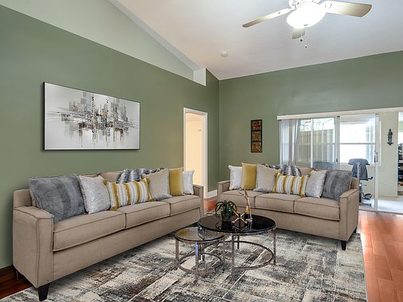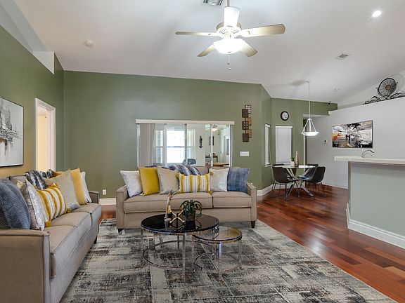 Welcome to your dream home! This spacious property offers luxurious living with its four bedrooms, three baths, and a generous 2337 sq. ft. of living space, complemented by a 400 sq. ft. enclosed porch for year-round enjoyment, totaling 3203 sq. ft. Nestled on over an acre of land, this property ensures privacy and freedom without any homeowners association restrictions. As you enter through the motorized gate, you're greeted by a beautifully fenced yard and a two-car garage. Inside, the real Brazilian cherry flooring adds warmth and elegance to the open-concept living areas, boasting high ceilings for an airy feel. With a split plan design, two master bedrooms offer versatility and comfort. Recent updates include a new roof in 2022, along with a detached shed and covered parking area in in the rear yard, providing ample storage space while still offering room for a pool. Also the yard is filled with multiple types of fruit trees ready for picking. Don't miss the chance to make this your forever home! This home is priced to sell at over $100,000 less than any comparable home on the Acreage currently listed.