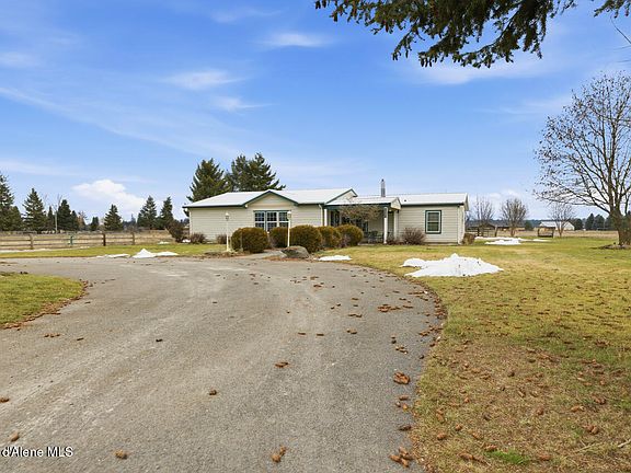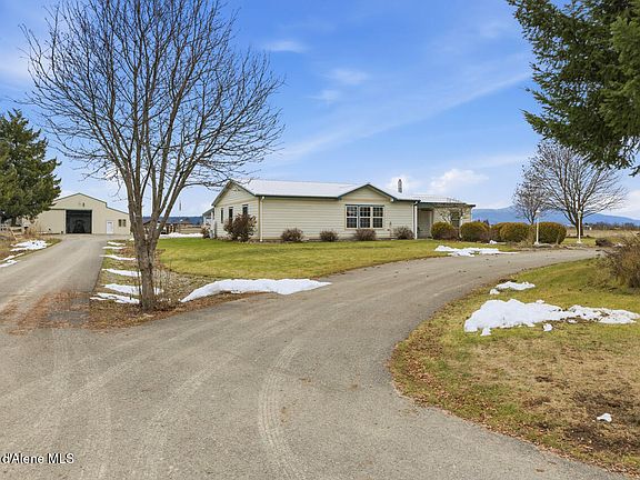 Welcome to this incredible North Idaho property on over 9 peaceful acres. This well maintained home features thoughtful updates including Quartz countertops in 2015, new LVP flooring in 2022, an extensive Master Bathroom remodel including a Walk-in Tub in 2022, pellet stove in 2023 and new siding in 2025. The property also boasts a 36'x48' shop with an additional living quarters including a 1/2 bath, perfect for guests or extended family, plus plenty of paved parking for your Boat or RV. Enjoy wide open views, room to roam, and easy access to Rathdrum/Coeur d Alene amenities, all wrapped up in a serene country