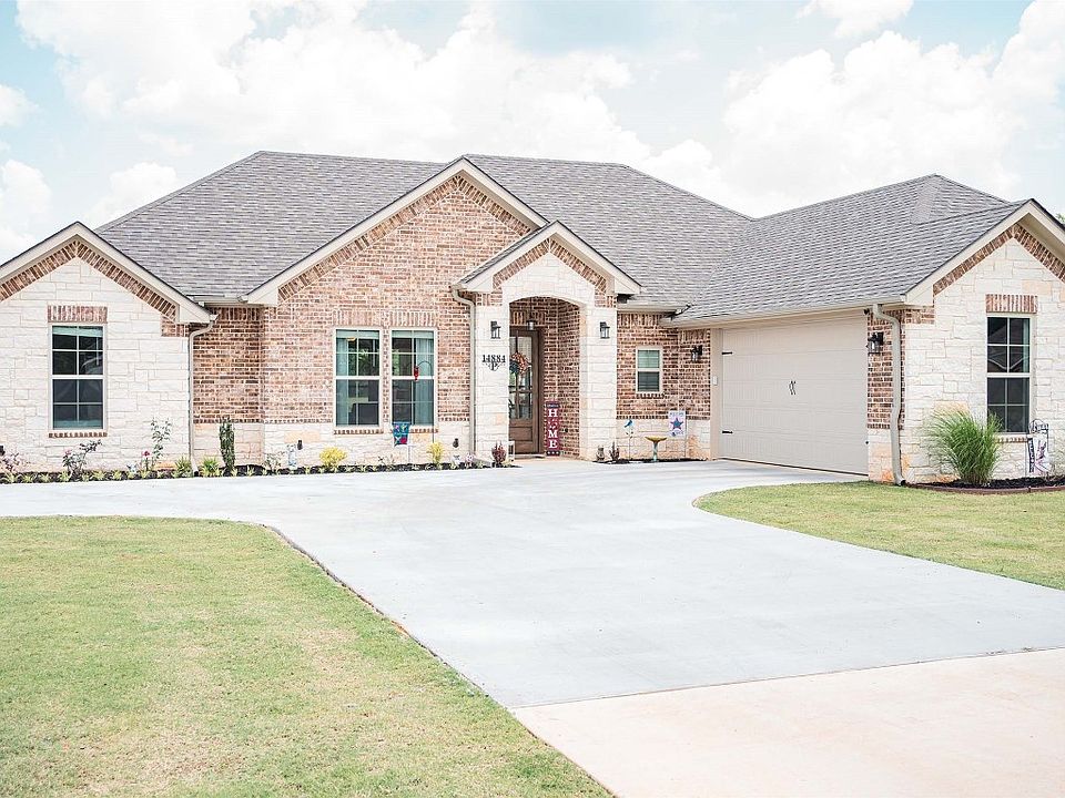 Designer home in one of Flint's newest neighborhood additions! This beautiful, well kept 4,3,2 will have you at HELLO! Walk into this interior designer-inspired, top rated energy efficient, spacious open concept living areas with luxury vinyl plank, fingerprint resistant appliances, premium granite counters, and an electric fireplace. Fall in love with all of the natural light the windows bring featuring a great view of the large backyard and stylish progress lighting throughout. Stroll through and notice the split floor plan with a large primary bedroom and primary bathroom that has a magnificent tiled shower and soaking tub. Sit and stay a while enjoying the views from the covered back patio! The large backyard offers an adorable storage building, bermuda grass, digital sprinkler system, partial privacy fence, and decorative landscaping. Start the summer off right in this convenient family friendly home and call for your private tour today!