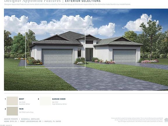 This lovely Sandhill home design includes 10' high ceilings and 8' doors giving this home a spacious, open feel. This Sandhill features a desirable split bedroom layout for added privacy. This homesite has room for a future pool or extended lanai. Enjoy the maintenance free living with our low HOA fees and no CDD. With our amenity center you can take a dip in our sparkling pool or relax in our spa to end a long day. We offer a fitness center along with a catering kitchen for entertaining guests. Estimated move-in Autumn2023