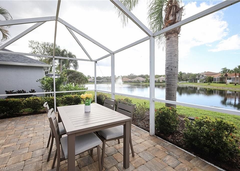 Looking for a single family home w/calming water views in N. Naples? Check out the bright & airy floor plan this charming home has to offer. Low maintenance tiled flooring throughout w/vaulted ceilings lead to a lovely, southern exposure lake view. Water views visible from the living room, extended lanai & primary bedroom create a sense of relaxation & tranquility. Located in amenity rich Sterling Oaks, this inviting sanctuary makes a lovely primary residence or seasonal escape. 2020 Roof & 2019 Garage Door/Impact Windows. Great Location < than an 8-minute drive to Barefoot/Bonita beach, Mercato shopping and <30 minutes to RSW airport. Live the country club life w/ a JR Olympic saltwater pool, hot tub & outside cabana. There is a superb fitness center, multipurpose room and sauna for you to enjoy as well. The newly renovated clubhouse is an engaging place to enjoy a Fri evening dinner. Tennis anyone? Pickleball? Bocce? Sterling Oaks has you covered! Optional tennis on 12 Tru Harcourt lighted courts w/an onsite USTA pro. Immerse yourself in nature while walking among the well landscaped areas in this active, pet friendly community. A nature lovers paradise- otters, turtles, birds +