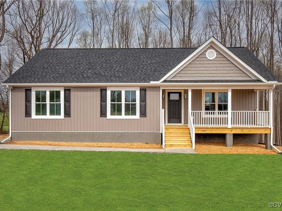Welcome to Lot 1 Carterville Rd. This brand-new 1,396 SF home under construction features a lovely open floor plan with 3 spacious bedrooms and 2 full baths on a 2 acre wooded lot. The main living, dining, and kitchen area provides an open floor plan with luxury vinyl plank floors throughout. Features of the kitchen include an island, granite countertops, stainless steel appliances, separate dining area just off the side, and custom built shaker style cabinetry providing loads of storage space. Each of the two spare bedrooms offer good furniture placement as well as good closet storage. The primary suite features a large walk-in closet, ceiling fan, and a wonderful private bath. The bathroom is equipped with trendy finishes including a beautiful vanity and a tiled shower. Outside the home enjoy relaxing on the large front porch or the rear patio. This home also has direct access to FIREFLY HIGH SPEED INTERNET! ESTIMATED COMPLETION: Late November/Early December. Photos and virtual tour are for example only to represent builder quality and floor plan. Please see specs and supplements for property specifics. Come check it out and if in time you can help personalize the last of the home finishings. We hope you call it home!