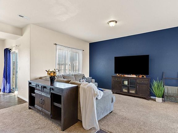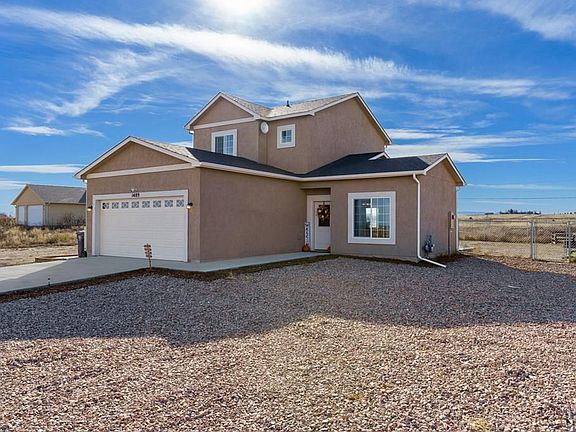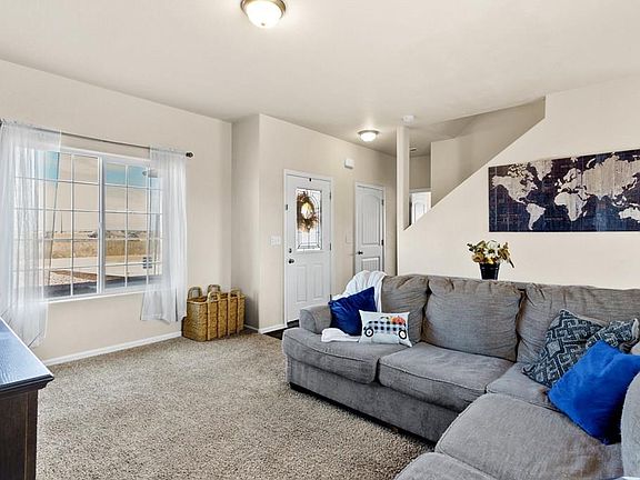 Welcome home to this absolutely charming three-bedroom, two-bathroom, two-car garage home set on a spacious acre of land, offering breathtaking mountain views! Nestled in a tranquil neighborhood, this beautifully maintained property provides the perfect blend of comfort, privacy, and convenience. Step through the front door and into the cozy living room, where you'll immediately be greeted by a warm and inviting atmosphere. The living room flows seamlessly into the dining area, making it the perfect space for hosting family gatherings and intimate dinners. You'll love indulging your culinary creativity in the well-equipped kitchen, featuring stainless steel appliances, ample counter space, and a pantry to keep everything organized. Through the kitchen's door, you'll find a patio and large fenced-in backyard with a firepit for entertaining. Rounding out the main level is a convenient bedroom that could double as a spacious office space. Also don't miss the full bathroom! Venturing upstairs, you'll discover two additional bedrooms one offering a walk-in closet with each offering ample space and comfort. A full bathroom completes the upper level. The home's thoughtful design also includes a two-car garage and storage shed, providing ample storage for your vehicles and belongings. Plus, its convenient location just minutes from grocery stores, shopping, and Interstate 25, insures easy access to everyday necessities and nearby attractions.