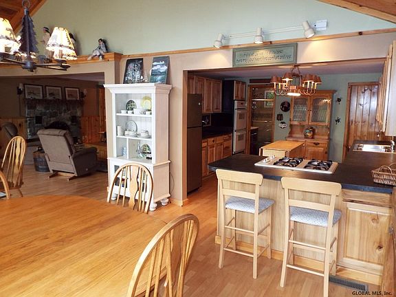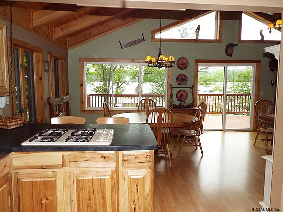 Contemporary year round house with 100 feet of Great Sacandaga Lakefront. Enjoy lake and mountain views from this bright and open 3 BR, 2 Bath home with bonus studio apartment with it's own small kitchen. Entertaining is easy in the open concept living and dining area with a warm & inviting wood burning fireplace. Relax on your private back yard patio or on the upper front deck. First floor laundry, dock and some furnishings included if desired. Experience all that the area has to offer from this wonderful lakefront home!