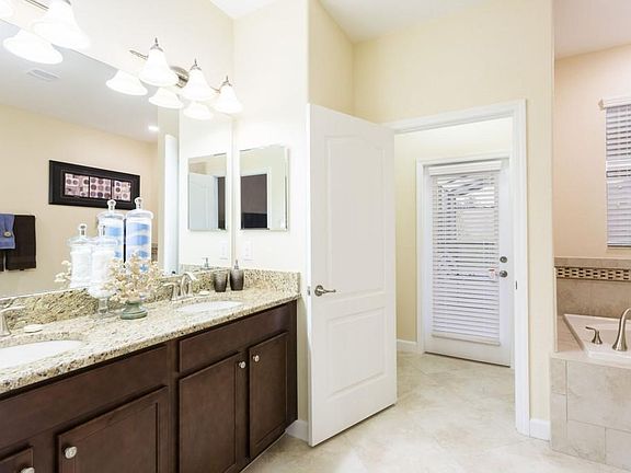 About the Champions Gate Villas - JHH 126537 Villa ; 8 Bedrooms ; 5 Bathrooms ; Sleeps 18 Enjoy a dream stay in an amazing Championsgate Resort Villa, just 15 minutes or less away from the fabulous Walt Disney World Resort. Within easy access to all major routes, the home is perfectly placed to provide quick and easy access to all of Central Florida's amazing theme parks and attractions, including Universal Studios, LEGOLAND and SeaWorld. This gorgeous vacation rental home includes a great pool deck, spa (both heated optionally) along with a games room and an impressive home theater that will entertain guests of all ages! With class leading resort amenities, your guests can choose whether to sunbathe by the pool with a cool cocktail or take a refreshing adventure in the kids splash area or lazy river whenever you choose! Best of all, you are less than 15 minutes drive away from Disney World! Entertainment Features A area includes pool table, foosball, and air hockey. WiFi is included Seat tiered cinema room Air Conditioned Living Space A spacious family living area includes a comfortable TV lounge area with sectional sofa, 2 chairs and wall mounted LCD TV. The dining area comprises 10 seats, and offers views out onto the pool deck. With a fully equipped kitchen including granite surfaces, stainless appliances, including dishwasher, range, refrigerator and freezer. Upstairs, a separate loft area provides a further small gathering area and TV. A professional home theater provides a fabulous relaxation space for film fans! Outdoor Living Spaces A screened pool and spa Covered lanai with patio furniture Games Room Pool table, foosball, air hockey Bedrooms King sized bedroom with bath and shower King sized bedroom with shower and twin vanities Bedroom with Full/Twin with a sports theme King sized bedroom with shower/bath combo King sized bedroom shares a Jack n Jill bathroom with; Frozen themed bedroom with two Twin sized beds A bedroom with Twin/Twin beds A Queen sized bedroom General Amenities The home is within walking distance of the 'Retreat Clubhouse and Amenities at Championsgate' Unlimited access to the water park, lazy river, clubhouse, restaurant. Adult Minimum Age: There is a security deposit of $500 for condos and $1000 for Homes due upon arrival in the form of a Credit Card Authorization. Upon satisfactory inspection of the property, security deposit pre authorizations will be voided no later than 14 days after departure. IMPORTANT Property ID: 126537 To complete your booking, you MUST register at https www.homescheckin.com, using the Property ID above, your Check-in Date, and your Last Name. After completing your reservation, your Check-in instructions will be available on the web site 7 to 14 days prior to your Check-in Date. VACATION RENTAL $419.00 PER NIGHT