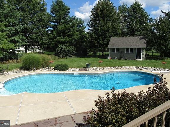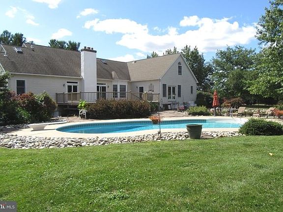 Beautiful 5 Bedroom Warwick Township Custom Built Cape on a gorgeous 1 acre property. This lovely Central Bucks home with its charming large country front porch leads into an inviting open foyer with beautiful hardwood flooring. Foyer leads to an open Great Room, with beautiful fire place, hard wood flooring and tasteful decor. Recessed lighting, 9 foot ceilings & extensive trim work on 1st floor. Lovely kitchen with an expansive island ideal for breakfast or entertaining. Kitchen also boasts of maple cabinets, porcelain tile floors, gas cooking and lots of counter space. Huge walk-in pantry with floor to ceiling shelving for all your kitchen storage needs. Large first floor laundry room with expansive cabinets and countertops. First floor has a large bedroom with full bathroom with French doors leading to the back deck. This bedroom could be used as the main bedroom if a first floor main bedroom is desired. Spacious first floor office along with first floor Family Room/Den and full bathroom. The 2nd floor has 4 large bedrooms and 2 full baths, walk-in closets, and lots of built-ins. Beautiful laminate flooring in 2nd floor Main bedroom and 2nd floor hallway. (Room measurements are approximate) An outdoor oasis awaits with beautiful heated salt water in-ground pool, professional landscaping, expansive rear fenced yard, large cedar deck, pond, & flag stone walkways. Partially finished basement with walk out, storage and separate work shop, utility room and plenty of storage. Newer Garage Doors and openers(less than 1 year), Hot water tank & circulator new in 2017, kitchen appliances less than 1 year, Newer pool pump (approx 1 years), New flooring 2nd floor hallway and 2nd floor main bedroom Sept 2017. This well built home is special in every way and incredibly spacious throughout!!