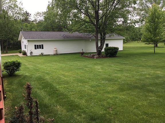 This home has it all. Builders home only one owner, well cared for and many extras. Main floor has 3 Bedrooms, 2 Full Bahs, 1 - 3/4 bath, Large Livingroom plus a 4 season room. Open concept kitchen and dining room, subway tile backsplash. Approx. Half of the basement is finished with 3/4 bath, non conforming bedroom, family room and finished room for storage. Other half of basement is unfinished where the Hot water boiler is located along with water softener and shelving with open space for additional storage or to finish. Mitsubishi commercial grade air conditioners are installed for summer cooling. Separate 30 x 40 framed garage with heated workshop this structure also has a 26 x 40 ft. pole barn structure to store RV, boats, ATV's. Underground sprinklers, landscaped yard. Great package all on over 4 acres between Cadillac and Lake City.