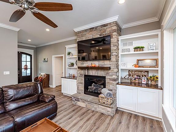 Come and see this beautiful 3 bedroom, 2 bathroom, 3 car garage home sitting on almost 5 acres that includes a fully-stocked pond! This 1900 square foot home is located in the wonderful Hallsville community! Step outside and enjoy the large covered patio with a beautiful view of the trees. Boasting lovely kitchen features such as gorgeous quartz counter tops, a double oven, and a pantry. The living room offers a beautiful stone fireplace to cozy up to. The master bathroom includes a stunning custom-tiled shower and a separate jetted tub. This home also offers Geothermal heating cooling and a tankless water heater. Schedule your appointment today so you don't miss out on this absolute gem!