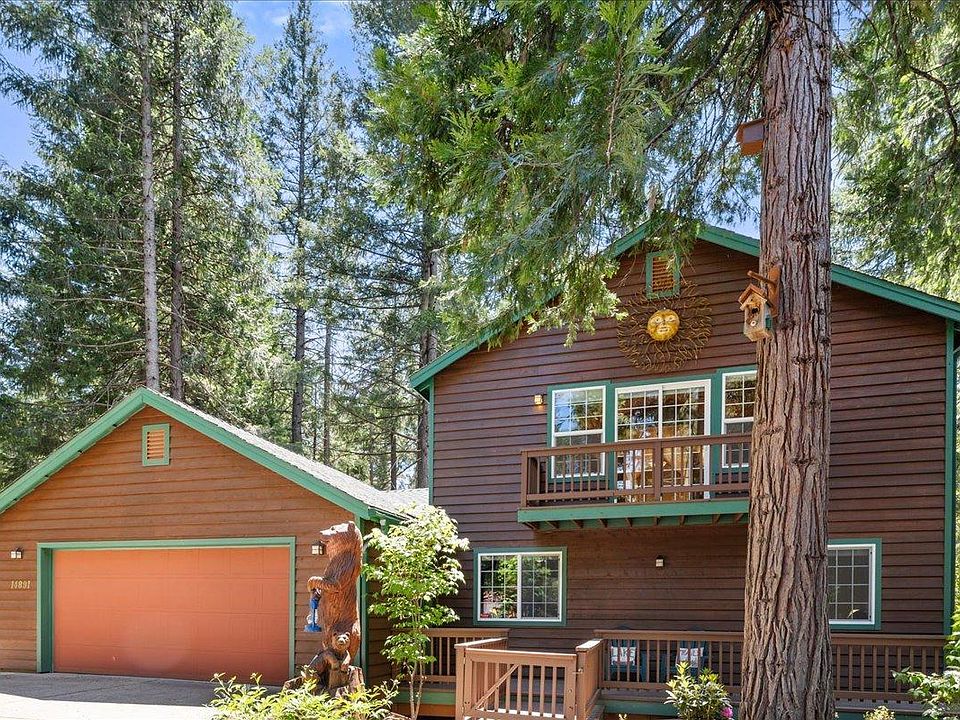 Huge price change! This charming cedar cabin-style home is just steps to Scotts Flat Lake, minutes from historic Downtown Nevada City and just 45 minutes to the ski slopes. Nestled within the mountain biking/off-roading//hiking mecca of the Tahoe National Forest, this home offers a year-round vacation lifestyle with accommodations for up to 10 guests. The inviting great room features a stunning rock fireplace, creating a warm and welcoming atmosphere which opens up to a large wrap-around deck for entertaining or relaxation. The downstairs gameroom, complete with pool table and T.V., provides a separate living space with an additional bedroom and bathroom, perfect for the kids. A charming seasonal creek flows through the backyard, offering a serene and picturesque setting. The home comes fully furnished and recently updated with tasteful decor. Move-in ready, start enjoying this home on day one!