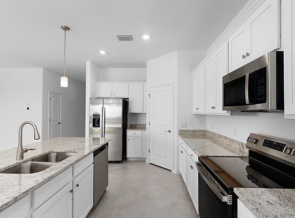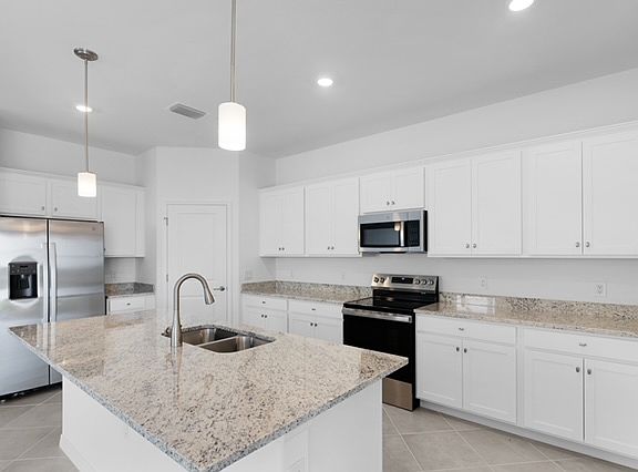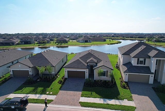 New 4 bedroom, 3 bath home with attached 2 car garage. This pet friendly home boasts an open floor plan with 2032 Sq Ft of living space and is located in a golf cart friendly gated community with amazing amenities and weekly food truck events. Residents enjoy the resort style pool, state of the art fitness center, pickleball, basketball, tennis and kids playground. This light bright home boasts white shaker style cabinets, granite counter tops, all tile no carpet, stainless appliances and large screened lanai with beautiful lake views. Great location close to shopping and schools. Pets allowed with approval. Home is vacant and easy to show.