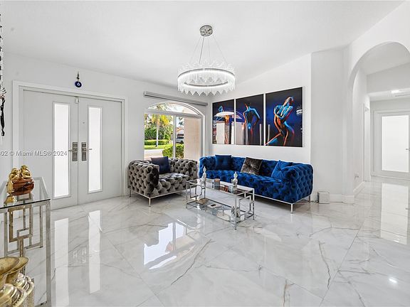Indulge in this impeccably designed corner home, offering taste and style. Step inside to find beautiful porcelain tiles throughout, high ceilings, and ample natural light. Featuring 3 spacious bedrooms and 2.5 elegant bathrooms. The kitchen is a chef's dream, featuring plenty of cabinetry, new stainless steel appliances, and elegant marble countertops. Seamlessly blending indoor and outdoor spaces, this residence is a perfect for entertainers and relaxation seekers alike. Outside, the expansive backyard boasts lush landscaping and a covered patio with a partial outdoor gas stove kitchen.