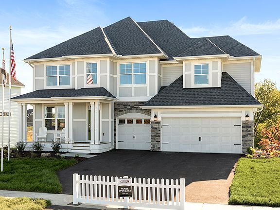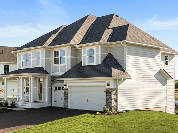 Modern architect-designed two story farmhouse with full front porchMultiple elevations options in LP SmartSide® prefinished siding with 4-sided architectural detail, including wrapped windows and trim boardsSpacious gathering room with fireplace and optional built-ins opens to informal dining and kitchenFormal dining room or optional flex room off main foyer entryLight-filled kitchen features wall of windows, abundant cabinetry, large center island with sink, walk-in pantry, and optional wine barOptional deck or patio off kitchenMain floor resource area adjacent to gathering room with optional built-in deskRear mudroom with optional built-in benches features large walk-in closet and half bathGenerous owner's bath features soaking tub, separate vanities, linen, soaking tub, separate shower, and large walk-in closet with windowOptional owner's bath with freestanding tub, walk-in shower, and dressing tableFinished staircase to lower level with space for future family room, bedroom, bath, and storage room*Home prices refer to starting from price and do not include optional home elevations, options, upgrades, or lot premiums. Prices, square footage, and availability are subject to change without notice. Photos and/or illustrations may not depict actual home plan configuration. Features, materials and finishes shown may contain options that are not included.