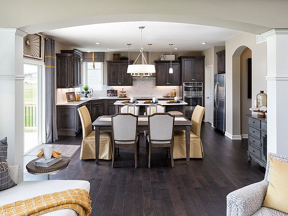 This one of a kind floor plan backs up to trees and a pond! Gorgeous backyard! This stunning home is under construction with an October completion date. It offers a beautiful sunroom upstairs and down. The family room has a tranquil electric fireplace to enjoy all year long. Between the box vault in the family room to the gable vault in the morning room, this home is sure to give the WOW feeling throughout! Come check it out. This community is down the street from the Mississippi River and has an awesome clubhouse and pool. We are close to all the amenities the North metro has to offer. We have the River Hills Park, Elm Creek Park Reserve with more than 3,000 acres of nature! Tons of walking trails, playground, picnic shelter, pickleball courts, basketball court, soccer field and sledding hill provide year-round activity in this striking community! Those who visit fall in love with these charming homes and all the nature around the area. It's a slice of paradise! Come visit today and discover the reason why everyone loves living in Riverwalk! We LOVE all buyer agents and happily welcome them here!! Schedule your appt today!!