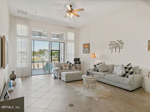 This CalAtlantic home is everything you have been looking for! Located on the edge of St Johns County and walking distance to Durbin Pavilion. The owners suite, all bedrooms and living area are on single story. 12 ft ceilings in living area makes this house feel very open and inviting. The water and fountain views from outdoor patio, kitchen, living and master bedroom makes this villa feel very warm and luxurious. Separate office, kids play area or could be a 4th bedroom! Plenty of room for entertaining in the open concept kitchen/family room with large center island, upgraded stainless steel appliances and outdoor patio. Home is perfect!