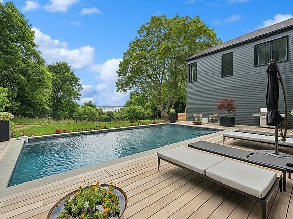 This state-of-the-art modern waterfront home, developed by Build Well, is situated on 2.4 acres and offers 6 bedrooms, 5.5 baths and heated gunite pool and spa with breathtaking views of Fort Pond Bay. Upon entry, this light-filled and beautifully designed main level floorplan offers an open-concept design for seamless entertaining and relaxed living. The gourmet open-kitchen features an oversized center island made with stunning quartz countertops and seating, top-of-the-line Miele appliances and is open to the spacious dining and striking see-through fireplace that unites two separate living areas, all of which provide exceptional water views. Also on the main level is a powder room, laundry room and access to the attached 2-car garage. Upstairs boasts a spacious, private primary ensuite with a walk-in closet, a spa-like bathroom with a freestanding soaking tub and double sink vanity, and 4 additional ensuites. Outdoors an outdoor shower, pool lounge area, and plenty of space for al-fresco dining overlooking the lush lawns and serene water views. A peaceful oasis with an absolutely breathtaking and enchanting view of Montauk from a perspective rarely seen, just a distance to Duryea's Lobster Deck & Montauket.
