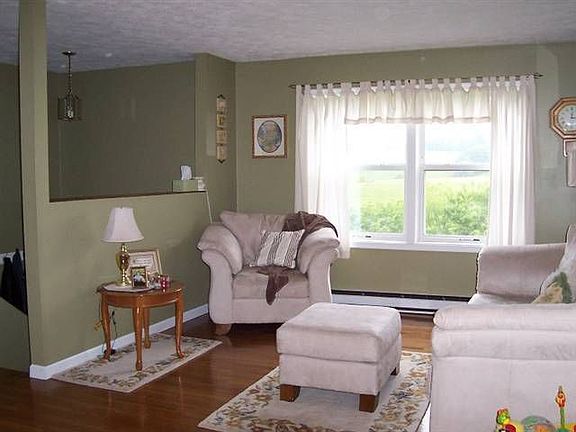 Open floor plan in living room, kitchen and dining area; beautiful hardwood floors; wrap around deck features 8 person hot tub that conveys; new roof; 1.5 acres w/a spectacular view. Property has underground dog fence.
