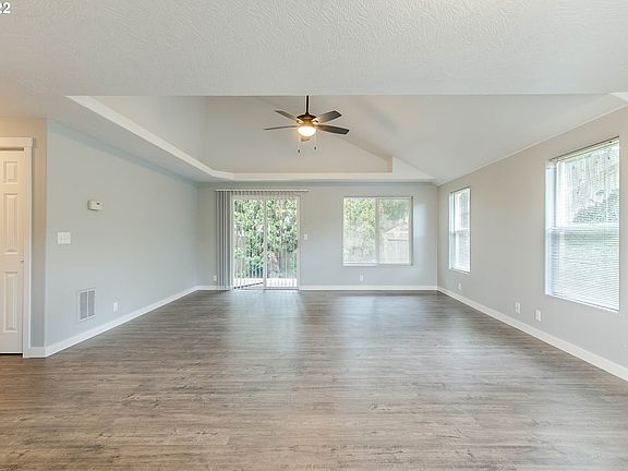 Move in ready Thurston home on spacious corner lot! This 3 bedroom home has fresh interior paint and brand new vinyl floors throughout. Vaulted ceilings in living + dining room. Brand new SS gas range & dishwasher. Covered deck & RV parking. Close to schools, shopping, & Mckenzie river. Don't miss it!