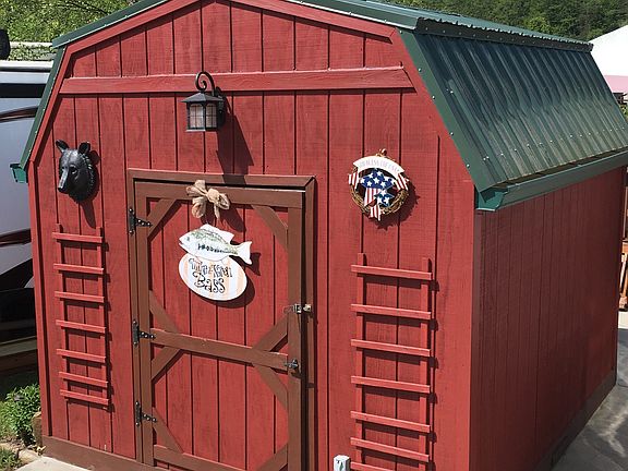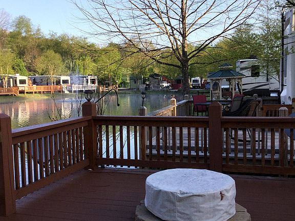 Rivers Edge II RV Park Lot 70 - Beautiful and quiet park with breathtaking mountain views. Great pond lot with large concrete pad. Bring your rods/reels and catch your supper or just enjoy the view and relax to the sound of nearby splashing fountains. Comes with extra large deck with gas fireplace. Also includes large shed with power. Also available is a 2012 Keystone Alpine 39 ft fifth wheel with 5 slides and automatic leveling. $82,500 for both or $42,500 for lot or $40,000 for Alpine.