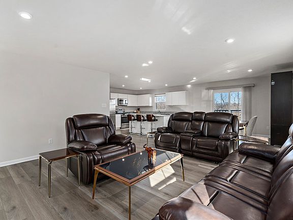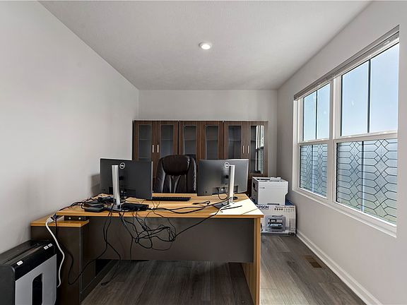 This stunning home offers the perfect blend of space, style, and functionality! Featuring Five spacious bedrooms, each with its own walk-in closet, plus a bonus loft area that can serve as a second family room, playroom, or even be converted into a sixth bedroom. The convenient upstairs laundry room adds to the home's thoughtful design. On the main floor, you'll love the open-concept layout, seamlessly connecting the living room, dining area, and gorgeous kitchen. Plus bedroom with full bathroom conveniently located close by. A dedicated den/office provides a great space for working from home. Engineered hardwood flooring flows throughout the main level, adding elegance and durability. The full walk-out basement is a blank canvas, ready to be transformed into your dream game room, home theater, or gym—plus, it's already plumbed for an additional bathroom! Outside, the backyard with serene wooded views awaits your vision for a deck or patio. Driveway extended to fit six midsize cars!