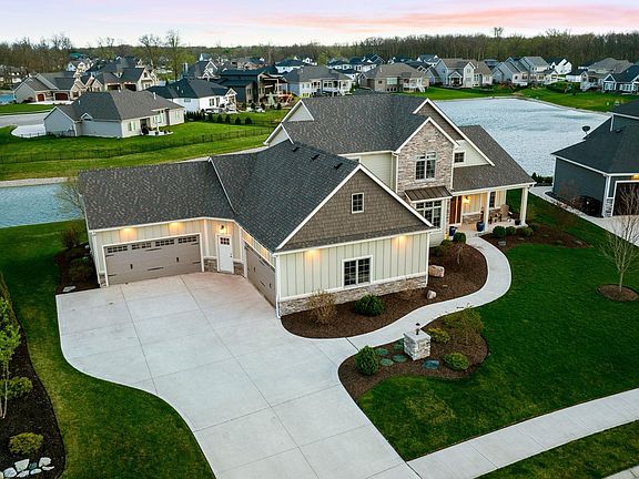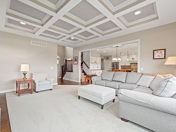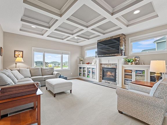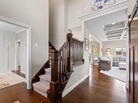 Welcome to your dream home! Entering the main level you will feel the warm but open space to this amazing home. First you will be greeted with the elegant entryway that is flanked with the formal dining room and den. Looking ahead you will notice the lovely Great Room with abundant windows, coffered ceilings, and built-ins on either side of the stone fireplace. Great room and beautifully designed kitchen flow seamlessly together with large island, plentiful cabinets that are accentuated with hard surface countertops, access to the deck that leads down to the lower level, and all of the high end appliances stay! Tucked to one side of the kitchen is a beautiful buffet with interior lighting. Primary Suite is on main level with large walk in closet and a dream bathroom with freestanding soaking tub, large tile shower, and private stool area. Upstairs you will find bedroom 2 with a private bath and bedrooms 3 and 4 share a tub/shower and have private vanity areas with walk in closets. Lower level has Guest bedroom with bath, extra large social area that opens to patio so you can enjoy the beautiful ponds. Lower level is an entertainers dream with kitchen area complete with dishwasher, and refrigerator. All appliances stay with home