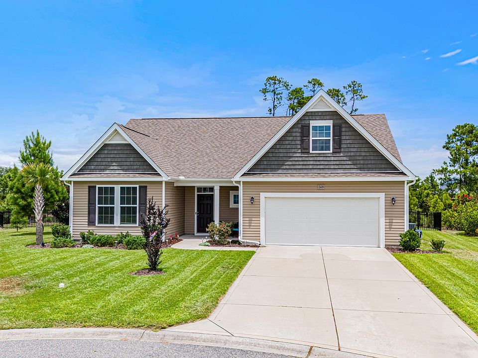 MOTIVATED SELLER! Welcome to your new move in ready retreat! Nestled in a serene neighborhood, this wonderful open concept home offers a perfect blend of comfort and charm. Located in Astoria Park, a sought-after Natural gas community conveniently located just 1 mile from International Drive and minutes from HWY 22 for easy access to N Myrtle Beach.  This lovely 3 bedroom, 2 bath one level home features: open floorpan, new flooring in two bedrooms and one bathroom, granite countertops and stainless steel appliances, walk in pantry, ceiling fans in main living area and bedrooms.  Large owner’s suite with tray ceilings, en-suite with dual sinks and walk in shower along with a spacious closet. Large garage with extra built in storage. One year home warranty included!  The house is located on a quiet cul-de- de-sac with an extra large lot. New  fence and irrigation system installed in 2023,  a perfect spot to grill or enjoy morning coffee overlooking the pond. Conveniently located  minutes to the beach, golf, fine dining, and all of the shopping along the Grand Strand.  USDA financing approved.  All measurements, features, and figures are approximate and not guaranteed. It is the responsibility of the buyer to verify any and all measurements.