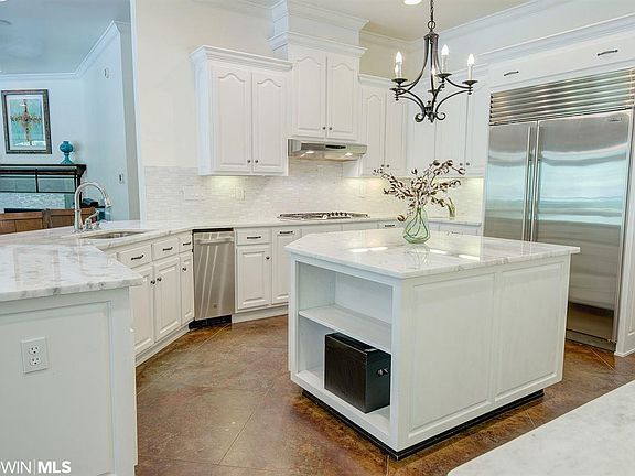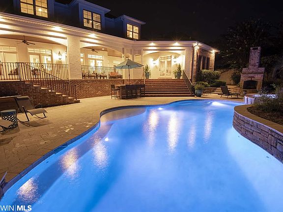 Experience luxury and elegance in this one of a kind showplace nestled on a 1+ acre lot on one of the most prestigious streets in Fairhope. The curb appeal of this mediterranean style home is stunning. As you enter, you'll note exquisite attention to detail at every turn. You're greeted with tall ceilings, beautifully finished floors, detailed moldings and custom iron work on the winding staircase. Straight ahead through the spacious living room is a wall of windows exposing the open back porch with amazing views of four greens of the Rock Creek Golf Course. The house flows perfectly from the foyer flanked to the right with a large formal dining room leading through the butler's pantry into the open and elegant kitchen adorned with stainless appliances, stone counters and custom cabinetry. Across the bar is an informal dining area and spacious yet cozy keeping room, all flooded with natural light and incredible views. The downstairs master suite is immense with gorgeous hardwood floors, romantic fireplace and a sitting area that may be used as an office that opens to the massive back porch. The master bath is incredible and must be seen to be appreciated. Absolutely huge with large shower, sunken jetted tub, tons of cabinets with dual vanities and vast closets. All of the bedrooms are large and well appointed as one would expect from a property of this grandeur. The outdoor living space is spectacular. Tranquil and private, you'll enjoy countless days and nights enjoying this beautiful oasis. Enjoy a freshly prepared dinner from your outdoor kitchen on the open porch overlooking the stone fireplace and hot tub flowing into the gorgeous pool. The meticulously landscaped grounds are fenced and lead to a scenic view through perfect oaks down a hill to the golf course. Truly one of the best views of any Fairhope home. This home has far more qualities than I can write here. Call today for your tour of this Fairhope masterpiece.