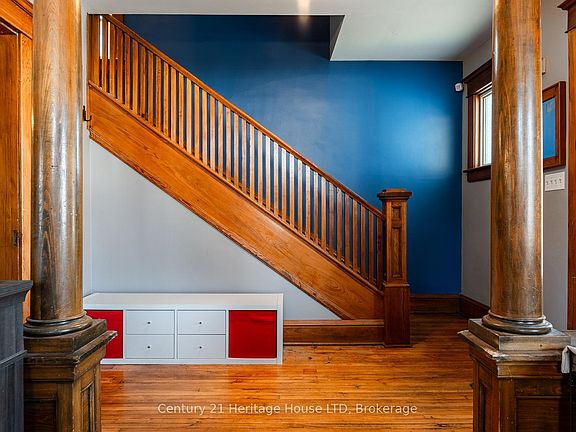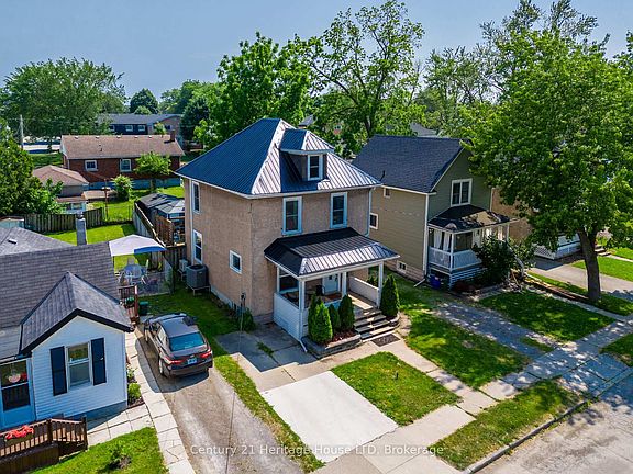 Charming Traditional Prairie Box Foursquare with Original Craftsman Character ~ Step into the elegance of a bygone era with this post-Victorian, Prairie Box 2-story home. Rich in character, this property blends classic architectural details with modern conveniences. Showcasing stunning original Craftsman woodwork, trim, and gleaming hardwood floors throughout, this home exudes warmth and classic charm. The inviting main floor features a spacious living room and formal dining room, ideal for entertaining, along with the convenience of a main floor laundry and a handy 2-piece bathroom, a rare find in homes of this vintage. A unique bonus awaits on the 3rd level, where a versatile loft area offers the perfect space for a home office, studio, yoga space, or cozy reading nook. Enjoy relaxing on the covered front porch, or hosting gatherings under the gazebo on the raised wood deck overlooking a fully fenced backyard, perfect for kids, pets, and summer evenings outdoors. Recent updates include appliances, metal roof(2023), furnace(2022), central A/C(2022), and hot water tank(2022). Centrally located in a walkable neighborhood just steps from the scenic canal-side walking trails, bike paths, parks, schools, grocery stores, and charming local cafes. This home offers both tranquility and everyday convenience. An opportunity to own a piece of architectural history with modern day comforts await.