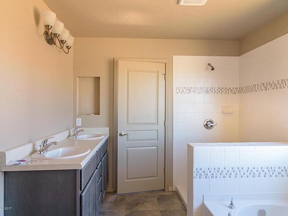 Nicely upgraded 4br/2ba, 1636 sf home minutes from Fort Huachucha. Kitchen includes with white quartz counters, 42'' grey maple cabinets, stainless steel appliances, and cabinet hardware. Tile throughout living spaces, with 4th upgraded carpet and 2nd upgraded pad in all the bedrooms. Prewired for ceiling fans and cable TV in bedrooms; along with fans in the great room and master. Energy Star and Environments for Living Certified Home.