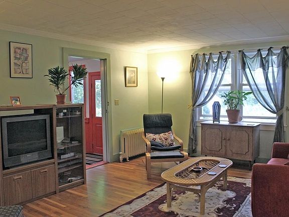 Very sweet single story home with wonderful natural light and nice sized rooms. Spacious living room with fireplace and built ins that is open to a glassed in sun room, eat in kitchen, mudroom and hardwood floors throughout. Office, laundry and workout space in the basement. Rustic fenced side yard with tall pines and a natural setting. Garage with an attached room that would make a great studio or workshop. Convenient location.