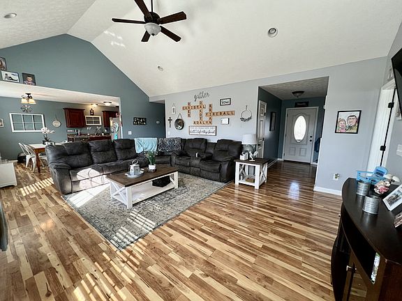 Gorgeous 3 Bed/2bath home with oversized two car garage & fenced backyard on a corner half acre lot! Soaring ceilings, beautiful hardwood laminate & tile flooring! New flooring & paint! Custom kitchen cabinets with stainless appliances that remain! Split floor plan/ concrete drive, sidewalks & brick mailbox.