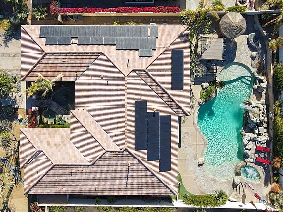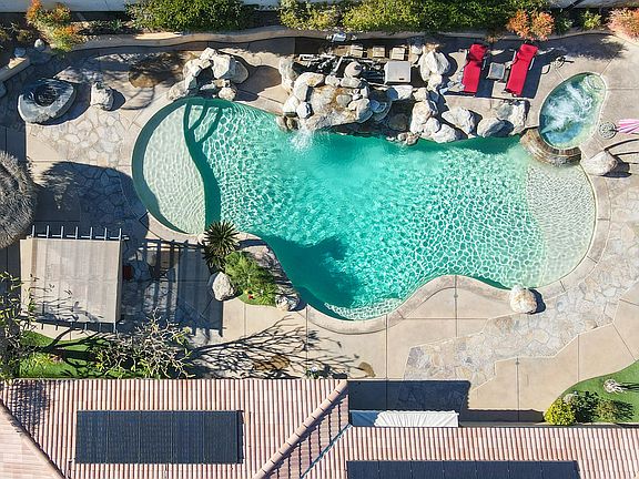 Spectacular 4 bedroom, 3.5 bath home in the intimate gated community of Brenna at Capri is being offered FURNISHED and sure to impress. Located on a large 11,316 sq. ft lot there are 50 OWNED SOLAR Panels for HUGE savings! An atrium with a spilling water feature & pond in the front walkway, leads you inside the home. This property features a fabulous resort style backyard with pool/spa, multiple water features, fire pit, BBQ & bar on a lighted Tiki Hut. Enjoy the sites while you rest & relax in the covered wrap around patio. Step inside to the gourmet kitchen with all stainless-steel appliances including a 48'' dual-oven Wolfe range, 60'' refrigerator/freezer, granite slab counters, upgraded tile backsplash, center island, pantry, wine fridge and breakfast bar. Just off the kitchen is a high ceiling great room with a Media Niche & fireplace perfect for entertaining. This home also features a separate & sizeable living room, formal dining, a dinette and laundry room. The spacious master bedroom has a sitting area, two good size his/her walk-in closets, en suite bathroom with dual vanities and a separate tub and shower. The other 3 bedrooms were recently updated with new floors and paint. Two of the bedrooms are adjoined by a Jack & Jill bathroom. The 4th bedroom has its own bathroom and walk in closet. Also included is an in-home security system. Located near a park, elementary school, golf courses and shopping. Low HOA. A must see! Call me for your private tour today!
