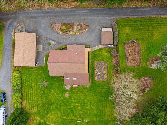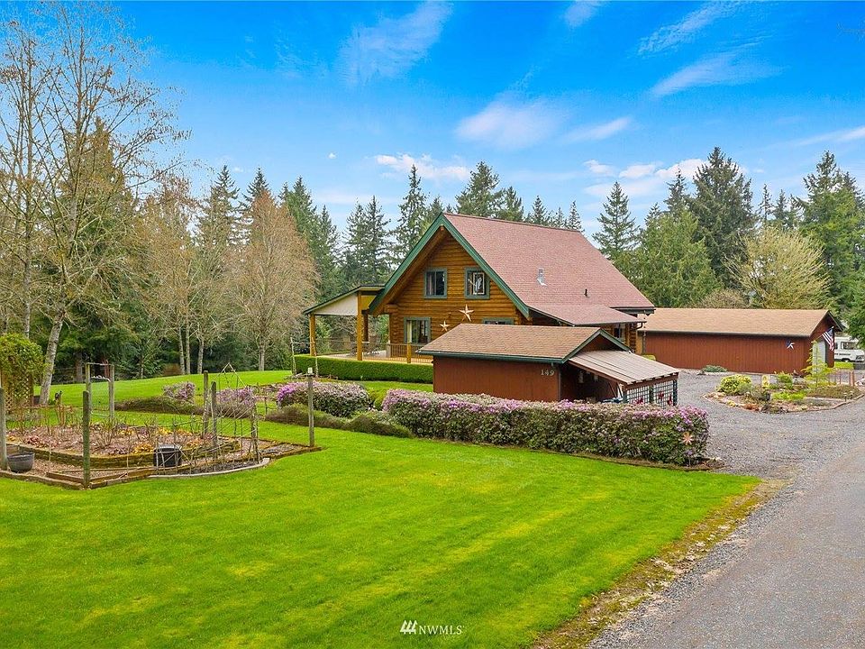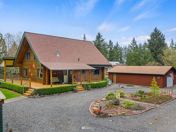 Immaculate Turn Key Home on large 1.25 acre lot with additional l.25 acre lot for a total 2.5 acre property. Great opportunity to build additional home, ADU or Shop on adjoining lot. Home features central air with AC/heat pump, updated roof & laminate flooring, refinished/sealed log siding, open concept living space & big wrap around composite deck. Kitchen has new stove, dishwasher, refrigerator & big island. Main bathroom has claw-foot tub with shower & custom vanity/sink. Loop driveway, oversized garage/shop 960 sqft & parking for RV. Property has private picnic area with fire pit, bathroom, sink & sports net for relaxation & entertaining. All located on dead end road with large surrounding lots for added privacy & easy access to 1-5.