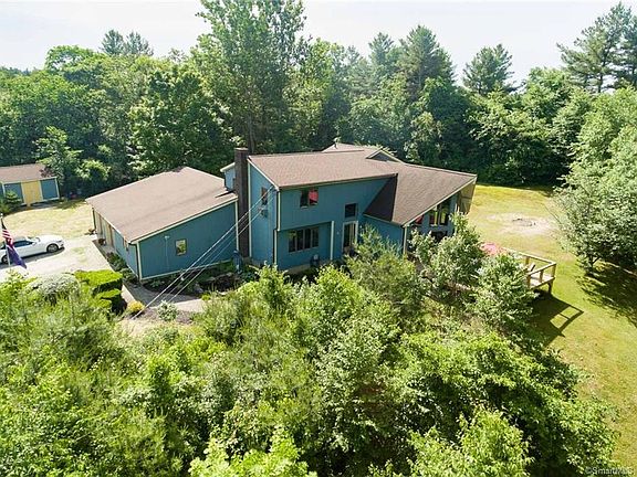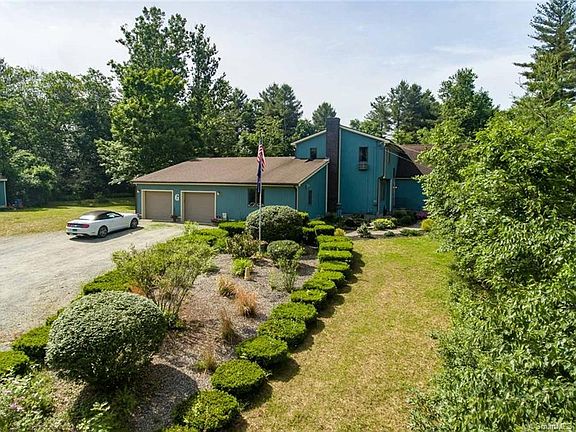 Sunny Contemporary home that cannot be seen from the road. Walk into the front door past the koi pond, and start to feel relaxed by the cool, beach colors in the two story foyer. The cathedral ceiling living room, with wood floors, has direct access to the new deck with wire rails and views to the western sky. The kitchen has been recently renovated, including new appliances, granite counters and breakfast bar. Plenty of room for a dining area, pantry, and wine closet. The formal dining room overlooks pretty gardens. 3 bedrooms upstairs, including the master with private full bath and walk in closet, 2nd full bath and balcony that overlooks the open foyer. A hidden rec room with high ceilings adds even more space to spread out. There is a finished space in the lower level for exercise room, or office, and plenty of storage. 2 car, oversize garage with high ceilings. The exterior has tons of parking space for big vehicles, and toys. Enjoy the pool in your private back yard oasis! Over 9 acres to explore.