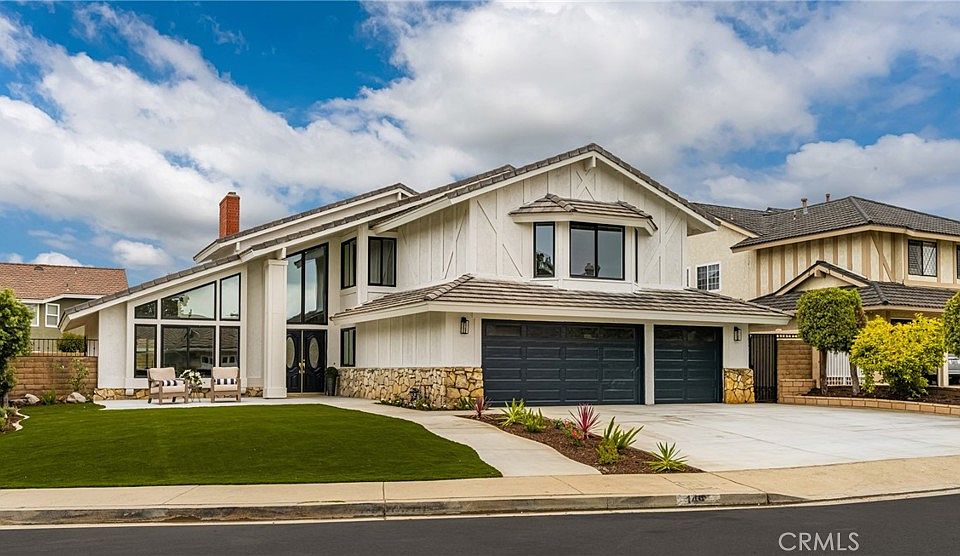Welcome to this highly updated 3,400+ square foot pool home that sits on a 9,000+ square foot, end of cul-de-sac interior lot in a charming area of Brea. This fantastic home boasts 4 bedrooms and 3 full bathrooms (1 & 1 on first floor). Absolutely NO STEPS from the driveway or garage to and throughout the first floor. The primary bedroom and ensuite are huge! This fabulous floor plan also includes a formal living room, formal dining room, large family room, 500 square foot bonus room(could be very large 5th bedroom) and a parlor room (quiet space adjacent to the formal living room). 3 fireplaces. A 3 car garage and interior laundry are also part of this stunning home. New: interior and exterior paint. New: kitchen (cabinets, quartz counters, fixtures, sink, angle valves & appliances). New: bathrooms (vanities, quartz counters, fixtures, sinks, angle valves, fully tiled shower/tub walls, frameless shower glass & toilets). New: luxury vinyl plank throughout all 3,400+ square feet. New: lighting fixtures including over 50 recessed led lights. New: interior door hardware (black). New: smoke & carbon monoxide detectors. New: flatwork/concrete (huge driveway, front walkway & entertainers porch). New: vinyl dual pane windows (black exteriors) and rear slider provide an amazing amount of natural sunlight. New: patio cover (alumawood style). New: pool heater, dec-o-seal, filter rebuilt. 50 year rated tile roof installed by previous owner in 2006. Newer: HVAC system (furnace & condenser) and 50 gallon water heater. New: mechanized garage door opener. New: artificial turf (low maintenance). 200 amp main electrical panel. Close to: Birch Hills Golf Course, Downtown Brea, Village at La Floresta (Whole Foods, Urban Plates, Mendocino Farms, Orangetheory Fitness, Club Pilates and many more wonderful shops/retailers), and "The Tracks at Brea" (a four mile long multi-use trail for pedestrians and bikers alike). Walk to Brea Sports Park. Finally, Section One termite clearance has been completed! This beautiful Eagle Hills home is ready for it's new owner.