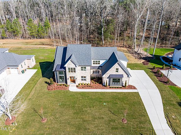 Welcome to 149 Bonica Creek, a luxurious retreat nestled in the hidden gem neighborhood of Rosemore Place, with direct access to Lake Benson. This stunning home features custom details throughout, with 6 bedrooms, including 2 on the main level, and 4.5 bathrooms, all meticulously crafted by a local builder to meet today's buyers' needs. Upon entering, you're greeted by a stunning two-story foyer and a grand sweeping staircase. On one side, you'll find a spectacular office with vaulted ceilings and built-ins, and on the other, a formal dining room complete with a wet bar and wine fridge. The open floor plan allows for seamless flow from the living room through massive sliders to a large covered outdoor patio, perfect for enjoying the expansive .6-acre backyard. The gourmet kitchen is a chef's dream, bathed in natural light with beautiful windows, two-toned cabinets, and high-end appliances. A breakfast area provides additional seating options, complemented by a large scullery with beverage fridge. The primary suite on the first floor is a sanctuary with vaulted ceilings, a luxurious bathroom, and a spacious walk-in closet. An additional main floor bedroom with an en-suite offers multi-generational living options and access to the back staircase. Upstairs, you'll find a large bonus room, four additional bedrooms, and two more bathrooms, along with ample walk-in storage. This home includes extras like 6-inch oak hardwood floors, 10-foot ceilings, 8-foot doors on the main level, a 3-car garage, dual staircases, built-ins, irrigation system and a pool-ready lot! With Lake Benson right at your doorstep, you can enjoy walking trails, picnicking, fishing, and canoeing any time of day. Plus, it's just minutes from shopping, restaurants, and downtown Raleigh. Experience luxury living at its finest.