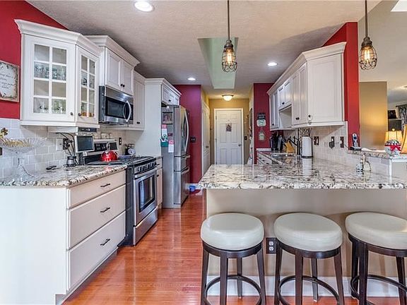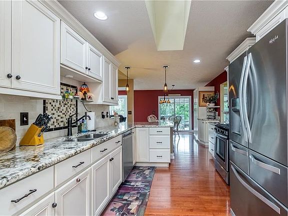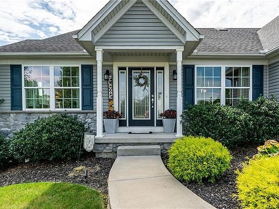 Single level living at its finest Well appointed ranch in the Brookstone neighborhood. Open and bright floor plan. Inviting covered entry with glass door and sidelights. Gleaming hardwood throughout. Private Living room/Den with abundant natural light. Dining room featuring tray ceiling, pillars and picture window. Fully equipped Kitchen includes granite counter tops, abundant custom cabinetry, pantry,tumbled tile backsplash, skylight, large breakfast area with bar. Family room, 30x14, features vaulted ceiling, two skylights and provides ample space for for entertaining and family enjoyment. Master suite with custom bath and ample closet space. Two additional bedrooms with full bath complete the first floor. Full walk out unfinished basement with bath rough ins provide unlimited potential for additional square footage. A two car attached garage services the property. An expansive tiered rear deck, with mechanical cover provides great outdoor space overlooking the large