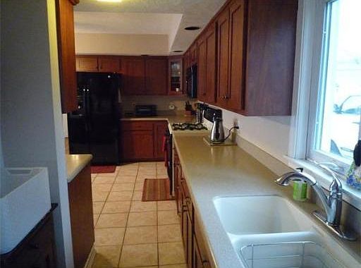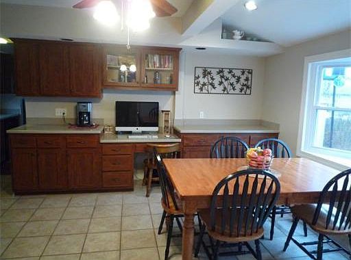 New England Colonial with farmers porch. Featuring a newer eat in country kitchen with corian counters, recessed lights and built in desk. A great space, nicely complimented by a large 1st floor family room with brick fireplace and cozy living room with French Doors. Other updates included newer siding, windows and remodeled bath. 1st floor laundry. All located close to town, trains and shopping. Detached garage, patio and useable rear yard.