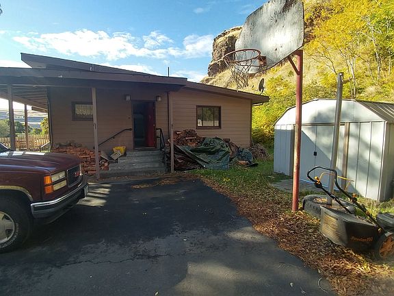 2400 sq ft Home For Sale in Wishram Washington, 3 bed, 2 bathroom, laundry, kitchen, dining room, Very large living room with Brick fireplace w/blowers and outside clean out for ashes. Located on 2 parcels on west side of school, bluff backdrop for privacy and seasonal waterfall w/trees and fence. Views of the Columbia river. 13 yrs on 50 yr roof, Trek Deck on covered deck, Rod iron railing, ramp for handicap accessible, security.