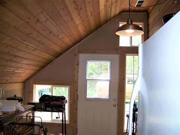 Super cute efficiency apartment above the garage on a half acre lot that adjoins acres of common area. Attached to the garage is a great storage area, it could be more sleeping or living area. There is a 30 Amp RV service and 2 cleanouts. Strong well @ 47' deep 22GPM. 24x26 insulated garage. If not heated in winter, it needs winterized. Cute as can be, affordable property to spend time in Donnelly. Boulder State Park ad Boat Launch in the Subdivision, summer boating and winter ice fishing. Tamarack Ski Resort is on the other side of the lake.
