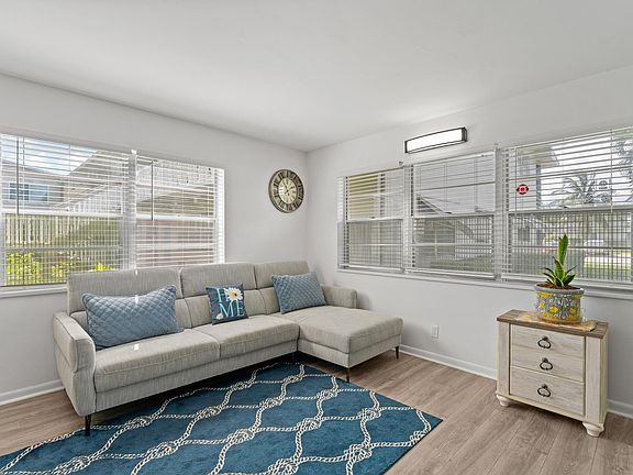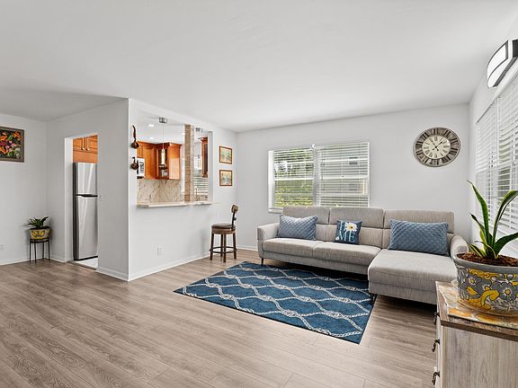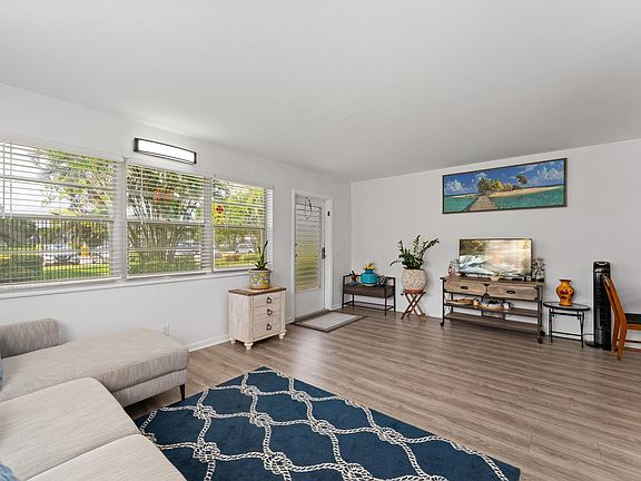 Welcome to Century Village, a welcoming 55+ community! Step into this fully updated and furnished home, where comfort meets style. The home features vinyl flooring throughout the main living areas, along with an updated eat-in kitchen with wood cabinets, quartz countertops, and stainless-steel appliances. The spacious primary bedroom offers a large closet for extra space and a beautifully updated bathroom with trendy white cabinets and a tub/shower combo. Step outside to the screened patio and enjoy the peaceful surroundings. The community offers a clubhouse, Swimming pools, free transportation, community laundry and so much more!! This beautiful home is ready to welcome you!